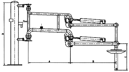 陆用装载臂设计用于公路和铁路槽车的顶部装载,具有较大的操作范围 和较好的平衡性。臂的长度可根据槽车的类型来确定。